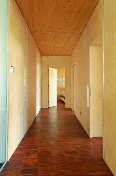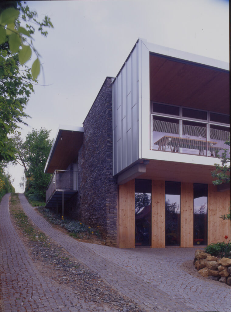 Ein Flachdach mit extensiver Begrünung schließt das Haus ab und ermöglicht den nördlichen und östlichen Nachbarn einen weiterhin ungetrübten Genuss der Landschaft.