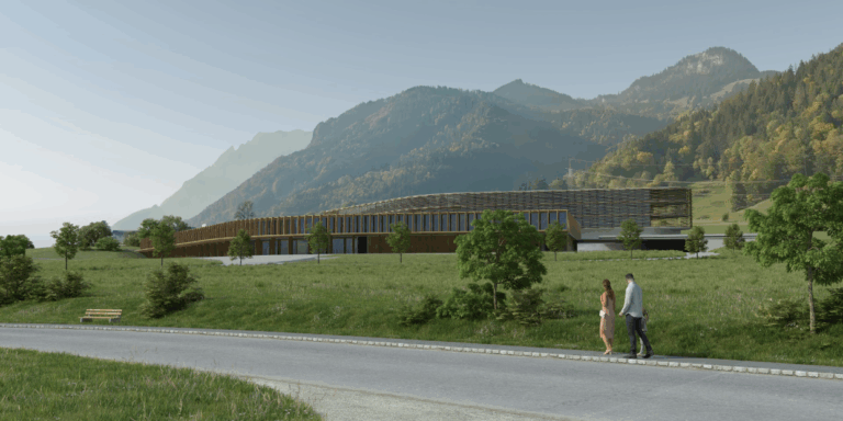 Das Tragwerk ist als Mischbauweise geplant: Massivbau im Erdgeschoss, Holzmassivbau in den Obergeschossen. Über der Fahrzeughalle liegt eine Holz-Beton-Verbunddecke auf Stahlbetonträgern. Begrünte Dächer und Photovoltaik ergänzen das nachhaltige Konzept.
